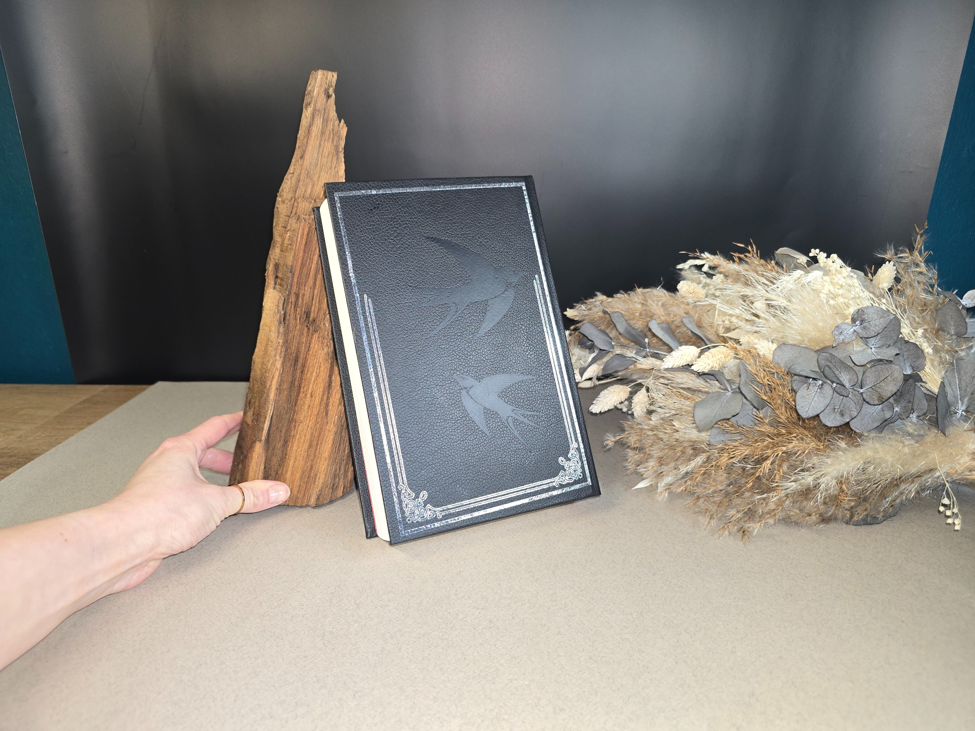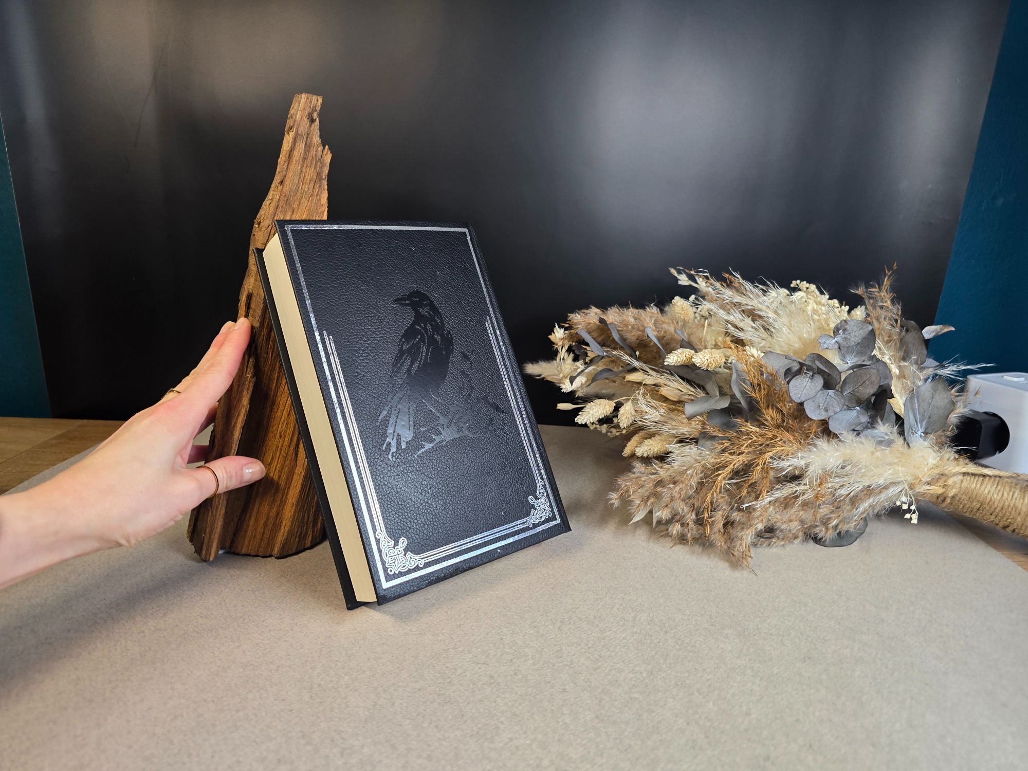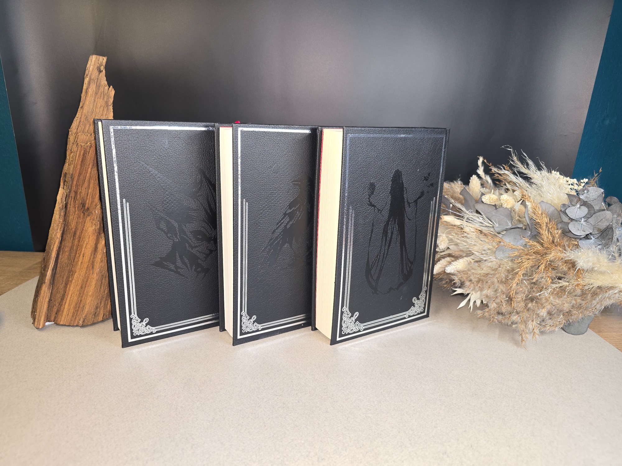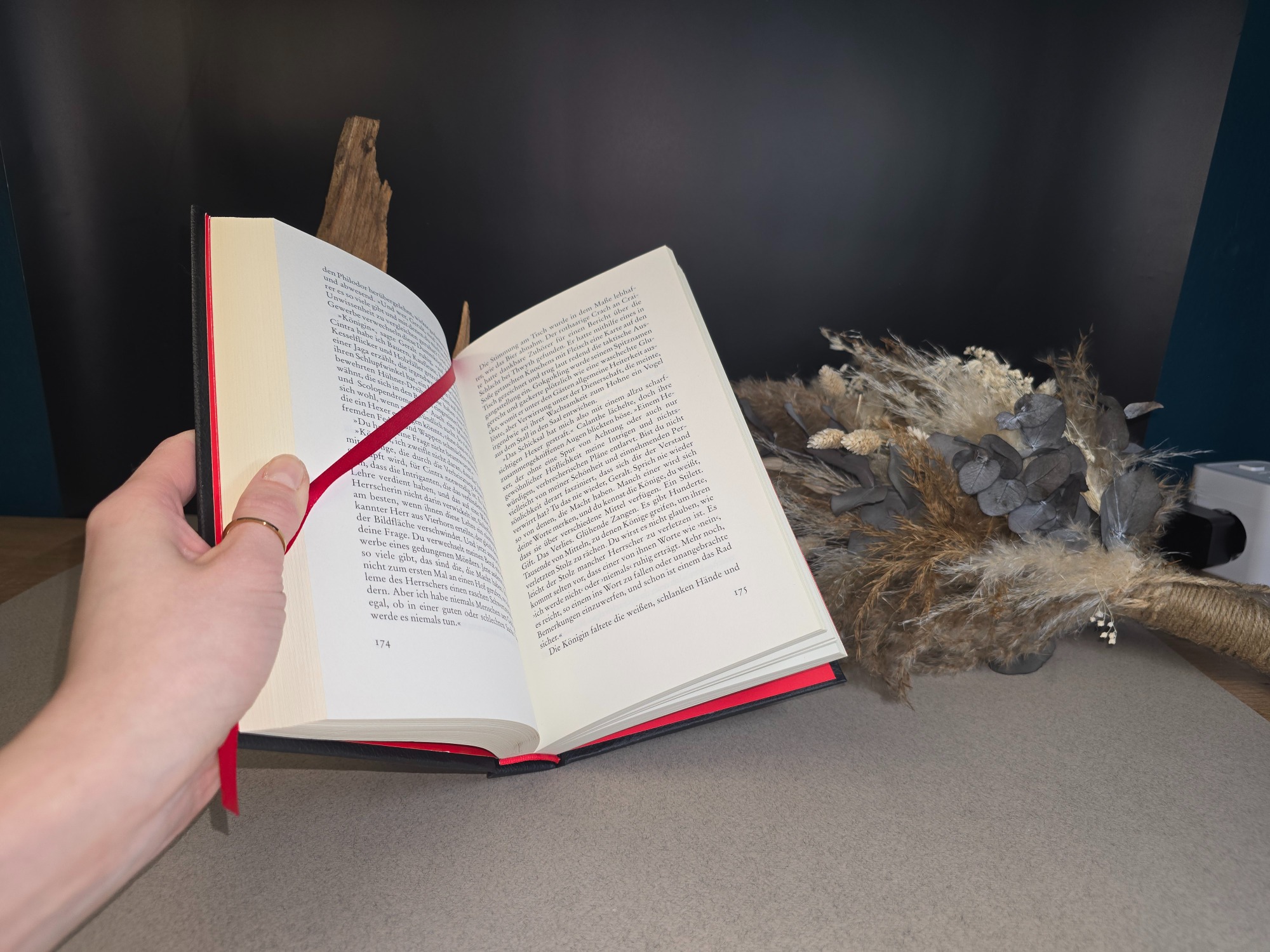 - Veredelung: silberne HTV-Folie auf Vorder- und Rückseite sowie auf dem Buchrücken, schwarze HTV-Folie auf der Rückseite und rote HTV-Folie auf dem Buchrücken